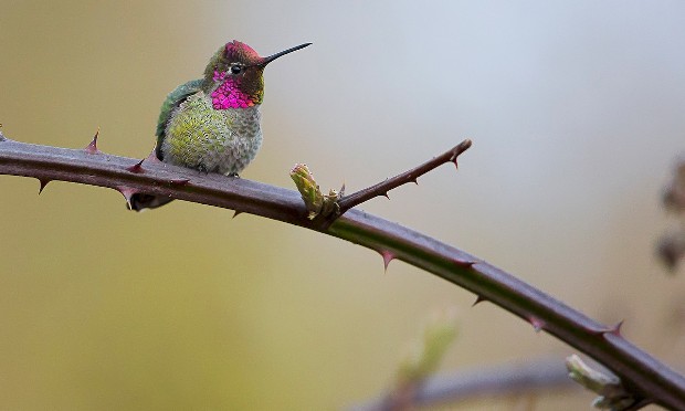 Anna’s Hummingbird is a medium sized (3.9-4.3 inches) hummingbird named after a Duchess. It is native to North America. These birds not only fly fast but are also gorgeous looking with emerald green flanks and reddish-pink throat complemented by a long slender beak. They are the only birds known to fly backwards. Male Anna’s Hummingbirds are infamous for their splendid courtship where they fly up to 130 feet in the air and dive towards their female, their tail feathers making a unique noise. Their predators include tree-snakes, curved-billed thrashers, and road runners, to name a few.