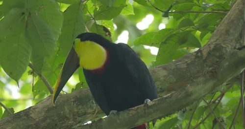 It is uniquely crafted rainforest bird which has imparted a very catchy look to a place where it habitats. It has 8 inches elongated beak with a slight curve in the upper surface. The beak is yellow anteriorly and black posteriorly. This sole specie of Toucan weights 500 grams.